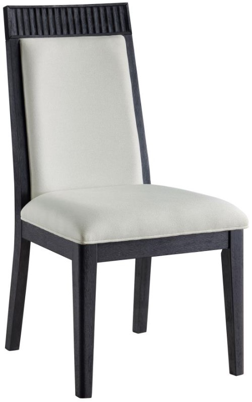 Elevate transitional dining spaces with this striking side chair, blending minimalist form and modern texture. A soft ivory upholstered seat and backrest provide a crisp contrast to the bold black frame, crafted from rubberwood and engineered wood.Read More