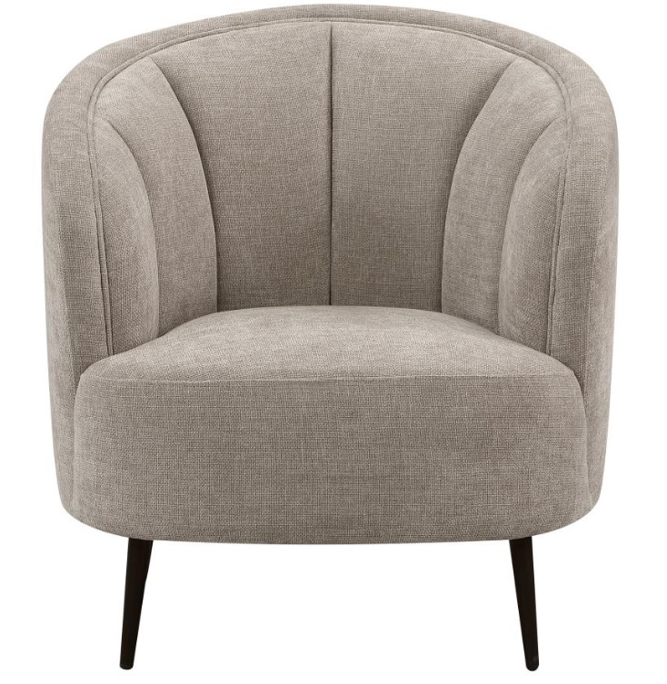 Showcase your style with a modern upholstered accent chair in soft beige velvet. Featuring wide channel details, plush foam cushions, and premium accent pillows, it offers comfort and elegance. The vertical tufting and tapered black metal legs add depth, making it a perfect focal point.Read More