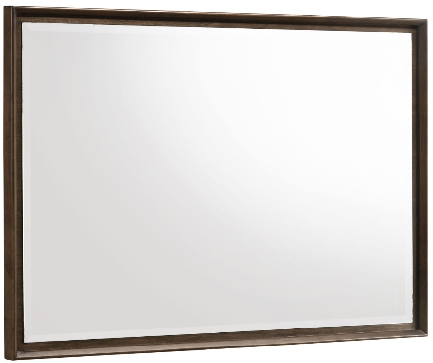 Augment your stylish dresser with a modern framed mirror. Perfect for the dresser top, it mounts directly and features a warm brown wood finish. The mirror boasts beveled glass for added depth, complementing its stylish reflectivity and depth. Mitered trim creates a slim frame that adds definition. Add a beautiful vase and flowers to complete the look.Read More