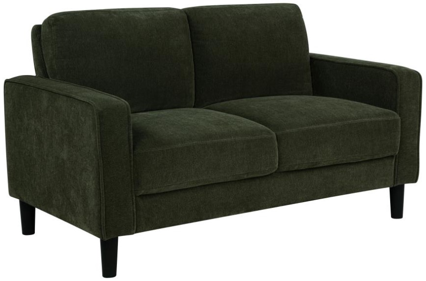 With a compact footprint and clean silhouette, this loveseat pairs soft structure with everyday versatility. Plush seat and back cushions rest within a tailored frame, defined by slim track arms and subtle piping.Read More