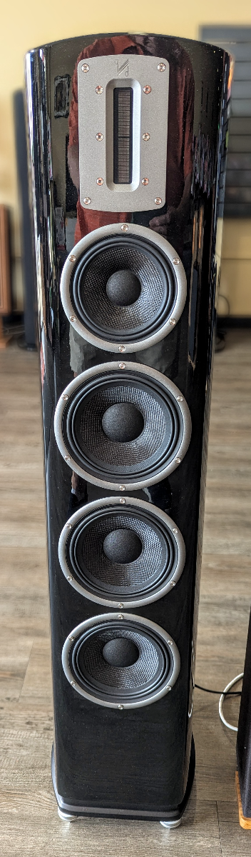 The Z-4 is a high-end floorstanding speaker that blends classic British audio engineering with modern acoustic innovation. The Z Series is Quad’s flagship dynamic speaker line, just below their ESL electrostatics. They use true ribbon tweeters--a composite ribbon sandwich substrate for durability suspended in a strong magnetic field for ultra-high sensitivity with smooth, detailed high frequencies. The midrange & bass drivers: 1 5.9" woven Kevlar midrange driver and 3 6.9" woven Kevlar woofers in a bass-reflex cabinet with rear port and resistive foam expansion chamber for tight, extended bass. The cabinet is a one-piece curved structure finished in piano black lacquer. These are special in their ability to disappear and become pure music. Highly detailed, excellent imaging and natural tonal balance. Condition: Mint...really!Read More