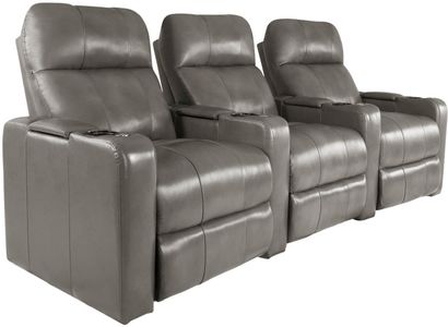 Prestige styling fits any décor or lifestyle. Whether in a media room as a sofa, loveseat, and recliner configuration or a row of chairs for a home theater room, this Leather/Vinyl Match is already a market leader. Each chair comes with storage arms that can hold a multitude of items-gaming controls, remotes, and a tray. Plush backs with pocketed coil spring seats, fully padded arms, and sides for hours of seating comfort. Prestige is very versatile, available in straight rows, or as a sofa or loveseat.Read More