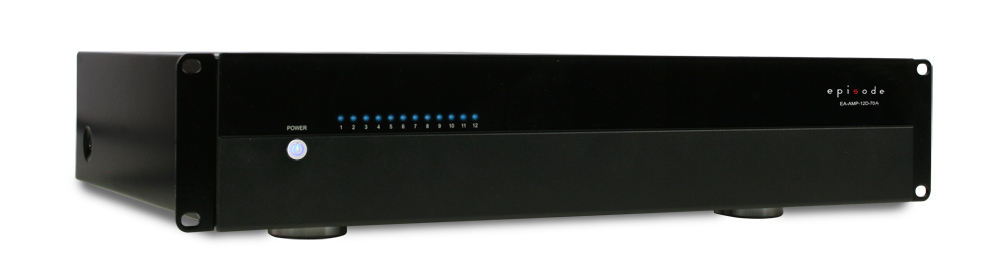 The Episode® EA-AMP-12D-70A is an efficient twelve-channel, Class-D amplifier that delivers a powerful 70 watts RMS per channel. Perfectly at home in multi-room applications, it features audio sensing turn-on, loop outputs, adjustable gain control and bridgeable outputs, giving installers the versatility required for today's sophisticated audio systems.