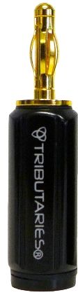 The Tributaries CON-4BPS is a Banana Plug with a small rear opening suitable for the combining two conductors on one end of the Series 4 Bi-Wire. Termination is fast and secure with dual screw terminals.