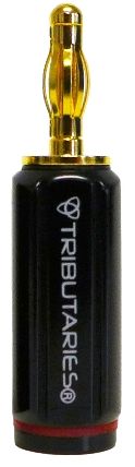 The Tributaries CON-4BPS is a Banana Plug with a small rear opening suitable for the combining two conductors on one end of the Series 4 Bi-Wire. Termination is fast and secure with dual screw terminals.