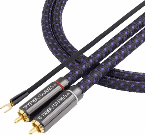 All Series 6 phono cables are meticulously assembled by hand in Orlando, Florida. The Series 6 MKII phono cable set is comprised of a S6 Single-Ended RCA audio cable and ground wire. The Series 6 audio cables begin with ultra-pure highly conductive oxygen free copper (HC-OFC) developed specifically for audio applications. Each conductor is engineered with dual solid gauge wires that are mathematically and tonally chosen to support low, mid and high frequencies for a natural sounding cable. Individually insulating each wire yields zero strand interaction and better sound quality. Unbalanced analog audio systems will benefit from using Tributaries Twin-Axial cable design. The precision twisted Twin-Axial design has dedicated conductors for the positive signal and negative return signal plus a heavy shield that is connected to the source end only. In this design the shield will capture any induced interference sending it to ground at the source end thereby isolating noise away from the input stage of the load. The ground wire is a flexible 20AWG stranded wire terminated with a gold plated spade lug that will fit ground posts that are 4mm and smaller. This configuration ensures a clear signal transfer with overall noise rejection as close to balanced as possible. The end result is a neutral sounding cable.Read More